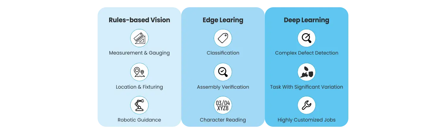In the context of industrial automation, machine learning in industrial automation is applied in various systems, including the utilization of Machine Vision Systems in Manufacturing that are revolutionizing manufacturing processes by leveraging advanced vision software and deep learning techniques. Vision software extracts valuable insights from visual data, while deep learning enables machines to learn and improve their performance over time. This combination of technologies leads to significant improvements in predictive maintenance, quality control, and process optimization across various manufacturing industries.